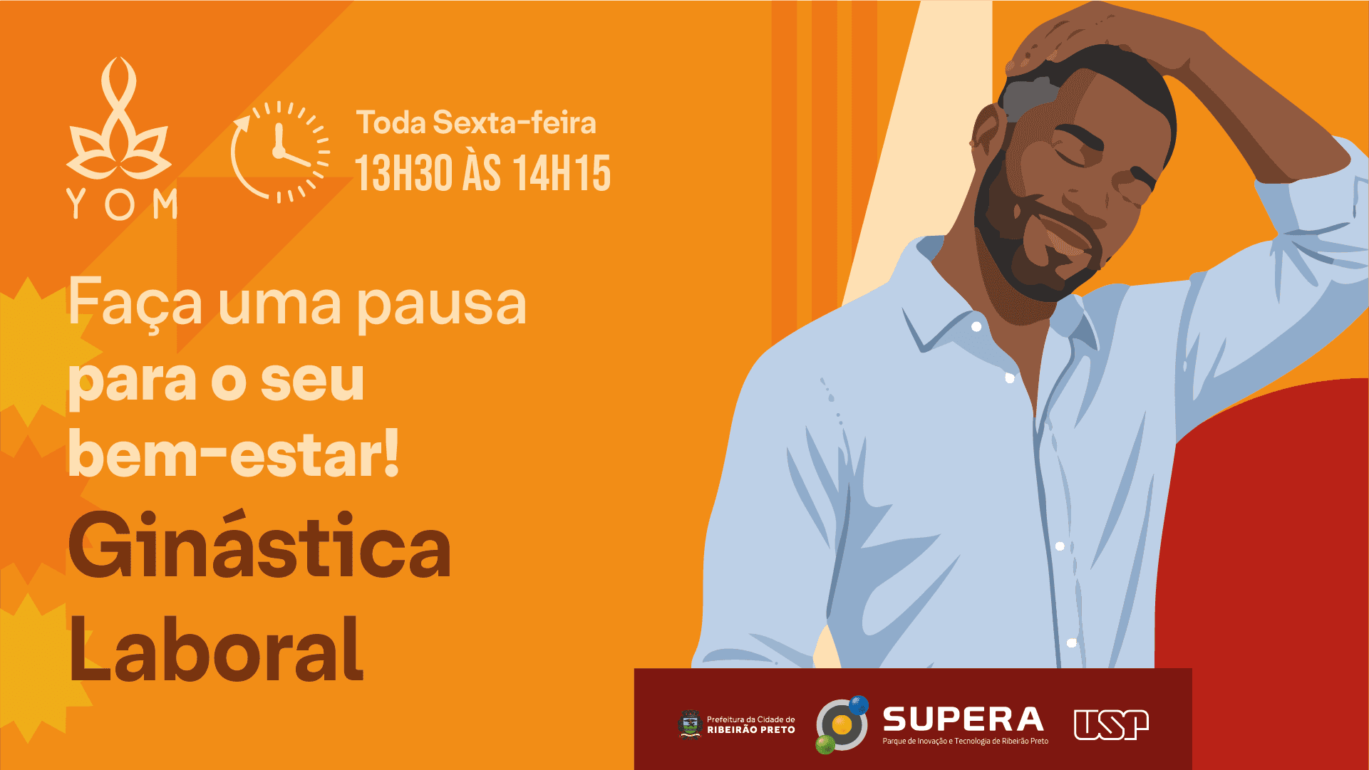 A Ginástica Laboral traz exercícios de alongamento, mobilidade e postura adaptados para o ambiente de trabalho, garantindo que todos os públicos possam participar! A ação acontece semanalmente, sexta-feira, das 13h30 às 14h15.