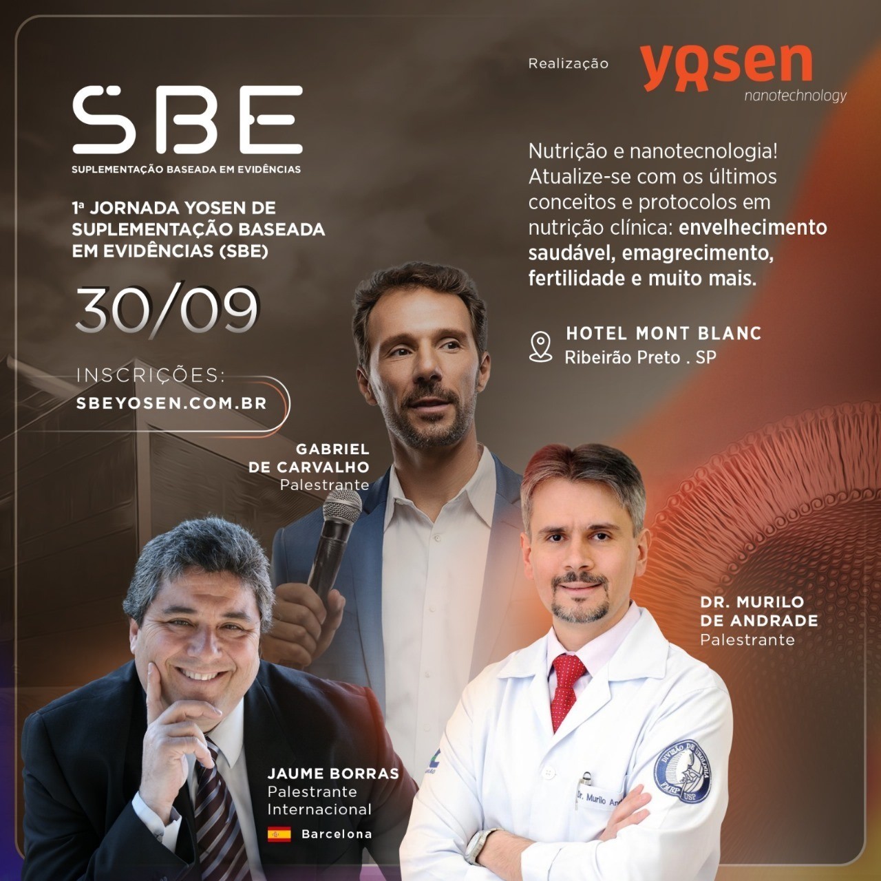 A startup Yosen realizou, em 30 de setembro, a 1ª Jornada Yosen de Suplementação Baseada em Evidências (SBE), em Ribeirão Preto, no Hotel Mont Black. O evento reuniu os mais renomados profissionais de saúde para discutir os últimos conceitos e protocolos em nutrição clínica e descobrir os efeitos revolucionários da nanotecnologia na absorção de suplementos.